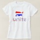Sur le T-shirt "unissez USA", nos 50 états viennent ensemble pour créer un mot simple "unissent". C'est un moment de division vraiment profonde dans notre pays, avec les états rouges et les états et le hyper-sectarisme politique bleus tout autour de nous. Mais nous que les personnes doivent d'une certaine manière unir si nous allons résoudre nos problèmes et faire notre pays et monde un meilleur de placer pour vivre et laisser pour nos enfants. Nous pouvons seulement faire ceci si nous unissons. Commençons une discussion et écartons le message. Un pourcentage des bénéfices de l'artiste sera donné à DAV (vétérans américains handicapés). Apprenez plus chez http://www.unitethe.us