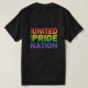 Le texte gras et multicolore "United Pride Strong Nation" occupe le devant de la scène sur ce t-shirt. Chaque mot se transforme en un dégradé multicolore dynamique, créant un sentiment d'unité et de mouvement.
