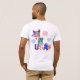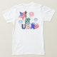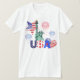 "USA" avec la Statue de la Liberté derrière elle et un coeur et une étoile dans le style drapeau américain, et feux d'artifice en rouge, blanc et bleu. Un grand cadeau pour le 4 juillet.
