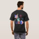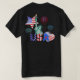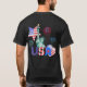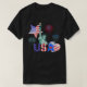 "USA" avec la Statue de la Liberté derrière elle et un coeur et une étoile dans le style drapeau américain, et feux d'artifice en rouge, blanc et bleu. Un grand cadeau pour le 4 juillet.