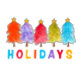 Des arbres de Noël colorés et amusants pour vos réjouissances de vacances. Oranges vives, violets, rouges, verts et arbres bleus surmontés d'une étoile dorée. Type en alternant des lettres colorées.