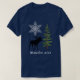 Cette chemise du festival d'hiver est décorée d'un flocon de neige, d'orignaux et de pins. Le look rustique et réussi de ce design en bleu marine plaira aux femmes et aux hommes. Personnalisez ce t-shirt avec votre propre texte.
