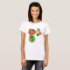 Une drôle de vache irlandaise debout sur une planète verte avec un trèfle en bouche. Ce design semble vraiment efficace sur ce T-shirt féminin