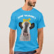 Le slogan sur ce tee-shirt graphique est prêt à être customisé avec votre propre message. Les lettres blanches en gras sont affichées au-dessus d'une illustration d'une vache mignonne portant un arc jaune.