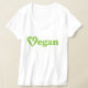 T-shirt végétalien avec le végétalien vert des textes où la première lettre V est écrite dans une forme verte de coeur. Conception fraîche et professionnelle moderne pour exprimer votre conviction. La forme de coeur est ici parce que les végétaliens ont le grand coeur complètement de l'amour le partageant avec les animaux et la planète entière. Et parce que la vie végétalienne est la seule vie montrant cet amour chaque jour en ne mangeant pas les produits animaux. Je t'aime végétaliens ! <3