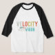 Le t-shirt présente un design dynamique avec le texte "Velocity Meets Vigor" dans un affichage multicolore. Chaque mot peut être une couleur vibrante différente, ou les lettres elles-mêmes peuvent être un dégradé ou un mélange de plusieurs teintes, créant un sentiment de mouvement et d'énergie