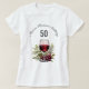 Verre Rouge Aquarelle en Olive 50e anniversaire T-shirts femmes. Le design se compose d'un verre de vin rouge aquarelle, de brindilles d'olivier et d'olives à la texture de pierre rustique. Le texte est entièrement personnalisable. T-shirt d'anniversaire élégant et rustique pour une femme.