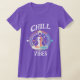Femme méditant graphique avec texte, "Vibes de frissons" relaxant, sensation éclairée.