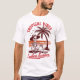 Ce t-shirt blanc présente le dessin d'un squelette portant un casquette à large bord, assis sur une plage à côté d'un palmier. Le texte "TROPICAL VIBES" est archivé ci-dessus, et "Endless Summer" est dans une police de script ci-dessous. Les oiseaux volent dans le ciel aux couleurs du coucher du soleil. Le design suggère une approche humoristique de l'après-vie dans un cadre tropical.