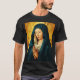 L'arrière - plan claire et sombre contraste avec la tête brune rayonnante de la Vierge et la coiffe blanche qui la recouvre, et ses mains sont délicatement fermées ensemble
