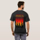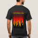 " Notre Dieu est un feu consumant…" Ce T-shirt noir soutient ces mots et une image d'un horizon de ville silhouettée contre la lueur du feu avec les braises brûlantes pleuvant vers le bas sur la ville.