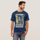 Le T-shirt de cet homme d'oeuvre dramatique comporte une illustration d'une affiche de WPA (administration de projet de travaux) pour célébrer l'héritage d'exploitation de la Pennsylvanie. L'illustration montre une gravure sur bois du principal et des épaules d'un mineur travaillant de la Pennsylvanie. Il n'est pas jeune et ne semble pas porté vers le bas par le travail dans les mines. L'illustration originale a été créée par l'artiste Isadore Posoff en 1937 de retour pendant les jours où la Pennsylvanie était la capitale d'exploitation de l'Amérique. Aux nuances de bleu et de jaune, cet ouvrier dur a réalisé le statut iconique. L'image originale est courtoisie de la Bibliothèque du Congrès des copies et photographie la Division.