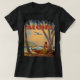 This is a digitally enhanced print of a vintage painting featuring a native Hawaiian girl under tropical palm trees and looking up at a vintage airplane. A sunset on the ocean is in the background. You can personalize the text in this template.