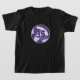 Ce t-shirt personnalisé de l'équipe de volley-ball féminin aux couleurs violettes et blanches présente un graphique de volley-ball avec un motif kaléidoscopique floral girly mélangé avec les panneaux violets du volley-ball - son numéro de maillot est personnalisable - par katz_d_zynes