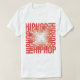 Un design de t-shirt audacieux et énergique avec le mot "HIP HOP" répété plusieurs fois dans différentes tailles et orientations. Les mots sont disposés en motif tourbillonnant, créant un effet dynamique et frappant visuellement. L'utilisation de nuances contrastées de rouge et blanc ajoute profondeur et intensité à la conception.