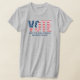 Que votre voix soit entendue ! La chemise d'élection en cuir gris brillant pour femmes est décorée d'un texte "Vote" avec un drapeau américain motif d'étoiles et de rayures en rouge, blanc et bleu. Le bleu marine "Comme le monde entier dépend de vous" texte personnalisé peut être personnalisé.