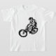 Un coureur sur un vélo de descente MTB. J'ai dessiné ça en utilisant l'espace blanc et le noir. Le coureur est équipé d'un casque et d'un équipement rembourré.