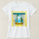 Une belle vue sur la plage d'été par une fenêtre. Ce design semble vraiment efficace sur ce T-shirt féminin