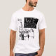Dessin de ligne. Une foule lors d'un rassemblement tenant des pancartes ; le signe le plus visible est "Nous sommes en désaccord". T-shirt dessiné par Jennie Evans