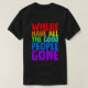 This design features the relatable and often sarcastic question, "WHERE HAVE ALL THE GOOD PEOPLE GONE" in a bold, vertical layout. The text uses a vibrant rainbow color palette (red, orange, yellow, green, blue, purple) and a distressed, grunge font style, making it stand out. It's perfect for expressing cynical, observational humor, social commentary, or just for fans of colorful, retro typography and pop culture phrases.