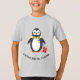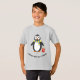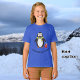 This t-shirt features a cute penguin wearing a striped winter scarf, with a festive red parcel ready for christmas gifting. The accompanying caption is "CHRISTMAS IS COMING" or you can edit this for your own wording.