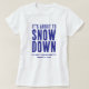 Funny white and blue It's about to snow down t-shirt for winter / ski themed bachelorette party. Personalize it with your event details and change the colors.