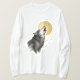 A striking long sleeve T-shirt featuring a wolf howling beneath a golden moon.