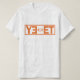 The T-shirt showcases the YEET logo prominently on the front. The logo consists of the word "YEET" in large, bold orange block letters. The two "E"s are connected by an interlocking chain element, also in orange. The design is simple yet striking, making it instantly recognizable and memorable.