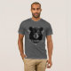 Une chemise Bella Canvas de base pour hommes montrée dans la couleur de l'asphalte avec le cou de l'équipage, manches courtes, montré avec une impression d'art d'une tête d'ours avec grand texte en gras de Yellowstone. Customisez cette chemise ou achetez telle quelle. Image stock all-free-download.com