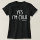 T-shirt Yes I'm Cold Me 24 7 Funny Freezing Quote Always C