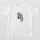 Tee-ringard avec dessin de zèbre de Mary Rogers. Chemise blanche avec col rond noir et menottes