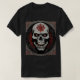 Un crâne menaçant et terrifiant aux yeux rouges et aux dents acérées, entouré d'une atmosphère sombre et menaçante.