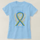 Le ruban de sensibilisation bleu et jaune aide les enfants atteints du syndrome de Down. L'art des chemises présente un ruban de sensibilisation bleu et jaune représentant un ange. Le message d'avant du t-shirt de sensibilisation indique "Croyez HOPE Ajouter votre cause ici". Sur le dos de la chemise se trouve le message de cause "Nous ne connaissons pas notre FORCE tant que ce n'est pas notre seul choix. Sensibilisation<Add Your Cause Name>". Ajoutez votre propre nom de cause. Tout le texte peut être modifié. Au lieu du mot "HOPE", un autre mot comme "FOI" pourrait être utilisé. Laissez le ruban de sensibilisation aider à soutenir la sensibilisation à cette cause ! Les vêtements d'art ruban bleu et jaune de sensibilisation peuvent être customisés avec des messages personnalisés pour créer des vêtements de cause pour les chemises de collecte de fonds, les chemises de promenade de l'équipe de groupe, des cadeaux de sensibilisation, ou d'autres événements de cause spéciale pour des marchandises afin d'aider à sensibiliser la population à l'aide de la société à créer de l'aide et à provoquer des changements.