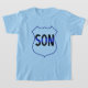 Cette chemise comporte un bouclier bleu autour du mot "Fils" qui a une fine ligne bleue à travers elle pour faire savoir au monde que vous soutenez votre parent.