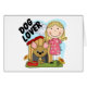Un adorable design amoureux des chiens avec une figurine en bâton blond cheveux fille et un grand chien à oreilles dans une maison de chien sur T-shirts, costumes, cartes, autocollants, sacs fourre-tout, magnets, porte - clés et autres vêtements et cadeaux amoureux de les chiens.