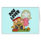 Une conception adorable d'amoureux des chiens comportant un chiffre de bâton fille d'une chevelure blonde et un grand chien à oreilles dans une niche sur le T-shirts d'amoureux des chiens, les combinaisons, les cartes, les autocollants, les sacs fourre-tout, le magnet, les keychains, et d'autres habillement et cadeaux d'amoureux des chiens.