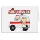Chiffre EMTs de deux bâtons et une ambulance avec le texte qui lit la "AMBULANCE" sur le T-shirts d'ambulance, les combinaisons, les tasses, le magnet, les sacs fourre-tout, les autocollants, et d'autres habillement et cadeaux de sapeur-pompier.