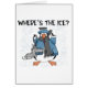 Un pingouin habillé dans un manteau, un casquette, et une écharpe bleus porte ses patins de glace et demande "où est la glace ?". Cette conception mignonne de patineur de glace de pingouin sur le T-shirts, les cartes, les tasses, les sacs fourre-tout, et d'autres articles est parfaite pour des patineurs artistiques !