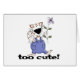 Un chat kitty blanc à rayures brunes tenant une fleur lilas et le texte "Trop mignon !" sur T-shirts, tasses, boutons, sacs, et plus encore.