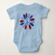Liberté, paix, liberté et esprit entourent un symbole patriotique de paix qui est aussi une fleur. Il y a un imprimé d'accompagnement sur le dos du t-shirt.