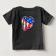 Notre petite fille hula est toute habillée dans sa robe de hula patriotique prête à célébrer le 4 juillet et à envoyer son message d'Aloha ! Ce dessin chéri orne ces nourrissons et tee - shirts en bas âge sur le devant avec un imprimé d'hibiscus sur le dos.
