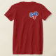 Un drapeau américain et trois planches de surf se combinent pour faire ce graphique patriotique qui dit "Amérique Surf". Il y a une empreinte cardiaque sur l'épaule droite arrière du t-shirt.