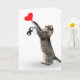 Chatte de tabby gris avec ballon de coeur rouge pour 8ème anniversaire sur arrière - plan blanc. La couleur Arrière - plan peut être modifiée