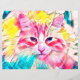 Belle tabby chat bleu, rose, jaune, noir de près. Amoureux de les chats filles scrapbooking papier. Design tendance, chic, moderne, cool, design pop art coloré et design. Ce papier de 110 livres peut être utilisé pour vos projets d'album photo, d'artisanat ou de découpage nécessitant du papier plus lourd. Copyright de l'image Marg Seregelyi Photography.