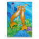 Deux tables de sirènes nageant sous la mer avec les poissons d'or.
