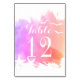Planche d'aquarelle rose abstraite moderne avec étoiles de mer et mouettes d'été table de mariage numéro carte place avec une peinture d'aquarelle peinte à la main avec texture dans les tons rose, violet et corail, deux étoiles de mer et mouettes en blanc et texte en blanc.