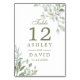 Rustic Watercolor Botanical Floral Numéro de tableau. Ce design botanique simple et élégant présente des feuilles à l'eucalyptus d'aquarelle dans les tons vert et blanc.
