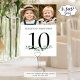 Panneau de numéro de table mariage personnalisé avec 2 photos de la mariée et du marié à travers les années pour divertir les invités. Amusant d'avoir des photos d'âge similaires sur le même panneau et des photos différentes sur chaque table que les invités se mélangent. Imprimé sur les deux côtés pour un affichage recto verso. CHANGEMENTS : La couleur du texte noir peut être modifiée pour correspondre à votre jeu de couleurs et la verdure peut être supprimée si vous ne le souhaitez pas. CONSEIL PHOTO : Choisissez des photos avec le sujet au milieu et/ou pré-rognage dans une forme similaire AVANT de télécharger et d'utiliser l'outil CROP pour ajuster l'image dans la zone modèle. ASSISTANCE : Pour obtenir de l'aide sur la modification ou la personnalisation de la conception, le changement de couleur, le redimensionnement ou le transfert de la conception à un autre produit, contactez le concepteur AVANT DE COMMANDER via l'onglet MESSAGE Conversation Zazzle ci-dessous ou envoyez un courriel à makeitaboutyoustore@gmail.com.