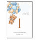 Ce design présente un ours en peluche convivial avec des ballons bleus et crème. Le texte "Table" est écrit en police de calligraphie moderne. Vous pouvez modifier le numéro de table à vos exigences (2, 5...7...10...) - chaque fois une nouvelle carte, et ajouter toutes ces cartes à votre panier.