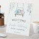 Bleu élégant bébé garçon aquarelle dormant sur la balançoire avec boho fleuri signe de bienvenue de la douche bébé garçon boho.